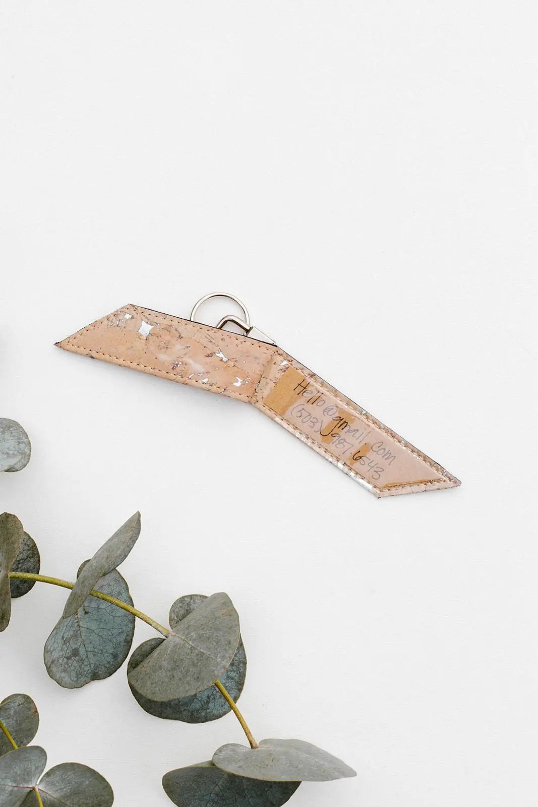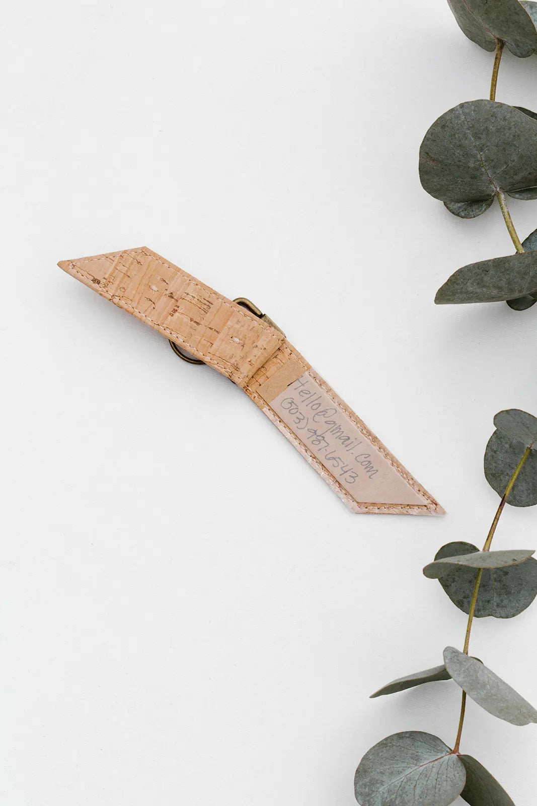 Whether attached to a gym or diaper bag, suitcase or keys, this sustainable cork tag with high-quality hardware feels classy and unique but in a perfectly understated way. Features include a concealed area to identify your contact information, a unique design to help you spot your bag, and a split key ring to easily attach to a zipper or bag handle.